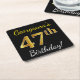 Posavasos Cuadrado De Papel Black, Faux Gold 47th Birthday + Custom Name