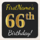 Posavasos Cuadrado De Papel Black, Faux Gold 66th Birthday + Custom Name