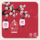 Posavasos Cuadrado De Papel "Blossom" y pájaro en rojo jaula