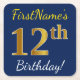 Posavasos Cuadrado De Papel Blue, Faux Gold 12th Birthday + Custom Name