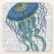 Blue Jellyfish 1 por Fab Funky. Cuenta con una bella medusa flotante azul con una página de libro para un fondo.|191847D