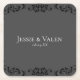Posavasos Cuadrado De Papel Boda gótico Gris y negro Swirl