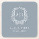 Posavasos Cuadrado De Papel Boda Monograma moderno Escudo azul turbio