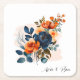 Posavasos Cuadrado De Papel Boda Navy Blue y Naranja Peony