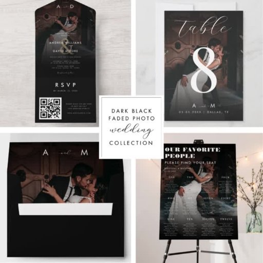 Posavasos Cuadrado De Papel Boda negro elegante de foto en desvanecimiento osc