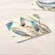 Posavasos Cuadrado De Papel Boho Acuarela Verde Azul y Plumas y Hierba Rosadas