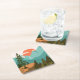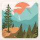 Posavasos Cuadrado De Papel Bosque abstracto moderno, montañas y amanecer