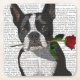 Boston Terrier con Rosa en Boca por Fabfunky. El Terrier de Boston aguanta un rosa en la boca. | 190339D