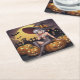 Posavasos Cuadrado De Papel Bruja de Halloween con Ojo Verde en Jack-O-Lantern