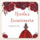 This Quinceanera coaster features faux glitter red floral flowers and a beautiful princess with brunette hair and an elegant dress. This is perfect for a Quinceanera birthday party.
