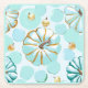 Un suave cuadro de aceite de ilustracion pastel de un patrón de colores azul claro y metálico con calabazas doradas y verdes. El fondo es una pared blanca. Hay calabazas doradas y verdes diseminadas por el patrón. La imagen general tiene un aspecto ligeramente limpio.