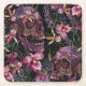 Posavasos Cuadrado De Papel Calavera bordada: Patrón de orquídeas góticas