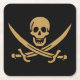 Posavasos Cuadrado De Papel Calavera y Cutlass de Oro Azteca Pirata Calico Jac