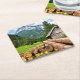Posavasos Cuadrado De Papel Campamento de tala en el bosque con montañas