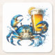 Esta montaña rusa de papel se muestra con un cangrejo azul sosteniendo una cerveza en la imprenta de arte de la celebración. Set de seis. Imagen con licencia