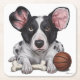 Posavasos Cuadrado De Papel Cañón visto con baloncesto y hueso