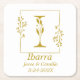 Precioso posavasos de papel cuadrado con marco botánico dorado dibujado a mano con letra botánica I en el centro. Personalice con el nombre de la pareja, fecha u otro mensaje.