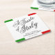 Celebre su fiesta de compromiso y futura boda lanzando un evento de degustación de comida al estilo italiano. Permita que todos socialicen mientras degustan los mejores y más populares platos de la cocina italiana. Estos posavasos de papel presentan rayas de la bandera italiana enmarcando el lado junto con las palabras "un sabor de Italia" hacia el centro. Todos los elementos del posavasos están desbloqueados y personalizables, incluida la frase "Un sabor de Italia". Simplemente use la función personalizada para acceder a estas características. Diviértase diseñando y haciéndolo suyo.
