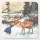 Posavasos Cuadrado De Papel "Chica que besa prácticos de costa del navidad de