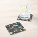 Posavasos Cuadrado De Papel Chinoiserie floral sobre Denim Blue