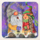 Posavasos Cuadrado De Papel Christmas Paper Coaster Couple Gnomes Singing