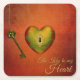 Posavasos Cuadrado De Papel Corazón dorado con clave