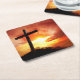 Posavasos Cuadrado De Papel Cruz religiosa de Pascua al atardecer
