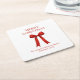 Cáscaras de papel de Navidades muy agradables con un diseño sencillo y minimalista con un arco rojo junto con el saludo "Feliz Navidad" y el nombre de tu familia.