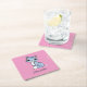 Posavasos Cuadrado De Papel Cuidar gato azul en nombre personalizado rosa