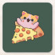 Posavasos Cuadrado De Papel Custom Kawaii Cat Hugging Pepperoni Pizza Cartoon