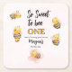 Posavasos Cuadrado De Papel Cute Bee One Pink Black First Birday Party