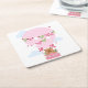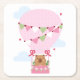 Posavasos Cuadrado De Papel Cute Capybara Hot Air Balloon Pink Birthday Party