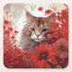 Posavasos Cuadrado De Papel Dessous de verre chat fleur
