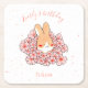 Mignon lapin entouré d'élégantes fleurs pour la fête d'anniversaire et le baby shower de votre enfant. Dessous de verre papier personnalisé avec le nom de votre enfant. Dessin d'un petit lapin entouré de fleurs. Produit faisant partie d'une collection.