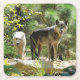 Posavasos Cuadrado De Papel Dos lobos grises en bosque