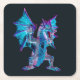 Posavasos Cuadrado De Papel Dragón de Fuego Azul Fantasía