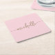 Posavasos Cuadrado De Papel Elegancia Rubor Rosa Oro Monograma Letra Firma