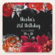 Posavasos Cuadrado De Papel Elegant Red and Silver Flowers Birthday Party