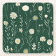 Posavasos Cuadrado De Papel Elegant Wildflower Pattern on Dark Green