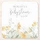 Posavasos Cuadrado De Papel Elegante Baby Shower Floral Amarillo