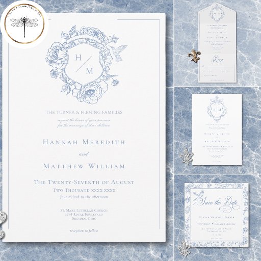 Elegant Blue Chinoiserie Bird & Crest WeddingDiseñado por Kathe Santillo