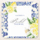 Celebre a la futura novia con esta elegante invitación de desayuno nupcial de estilo mediterráneo. Con limones de acuarela, flores suaves azules y letra a mano, es perfecta para un desayuno nupcial de verano o en el jardín. Personalice el texto fácilmente para su evento especial. Ideal para una celebración con tema de limón, inspirada en Italia o rústica chic.