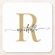 Posavasos Cuadrado De Papel Elegante Nombre de Guión de Monograma de Oro Blanc