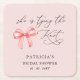 Posavasos Cuadrado De Papel Ella está atando el lazo rosa Despedida de soltera