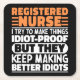 Divertida Enfermera Registrada Dice "Enfermera Registrada Intento Hacer Que Las Cosas Sean Una Prueba Idiota Pero Siguen Haciendo Mejores Idiotas". Agarra este divertido diseño de enfermeras registradas como un regalo gracioso para una madre, papá o amigo formidable.