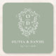 Posavasos Cuadrado De Papel Escudo de Monograma Floral Verde Sage Boda Moderno