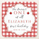Jueves de Papel de Cumpleaños Princesa Fairest One Red Gingham Plaid - Agradables tartas de papel de primer cumpleaños con un fondo de gingham rojo y una forma de etiqueta vintage. La frase "la más bella de todas" está enmarcada por dos manzanas rojas. Inspirado por el clásico cuento de hadas de la princesa Little Snow White de los hermanos Grimm. Personalice agregando el nombre de su pequeña niña y la fecha del fiesta.