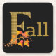 Bonito Caída / El diseño otoñal presenta la letra mayúscula "F" con relleno de yeso dorado / marrón y un recubrimiento de hojas otoño de color naranja acuarela, sobre fondo negro