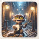 Posavasos Cuadrado De Papel Fantasía, un gato lindo jugando banjo