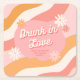 Posavasos Cuadrado De Papel Favor de Despedida de Soltera Retro Rosa Enamorada